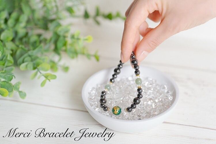 一日身に着けたブレスレットは、水晶チップの上に乗せて浄化(休ませる)事をオススメしています。